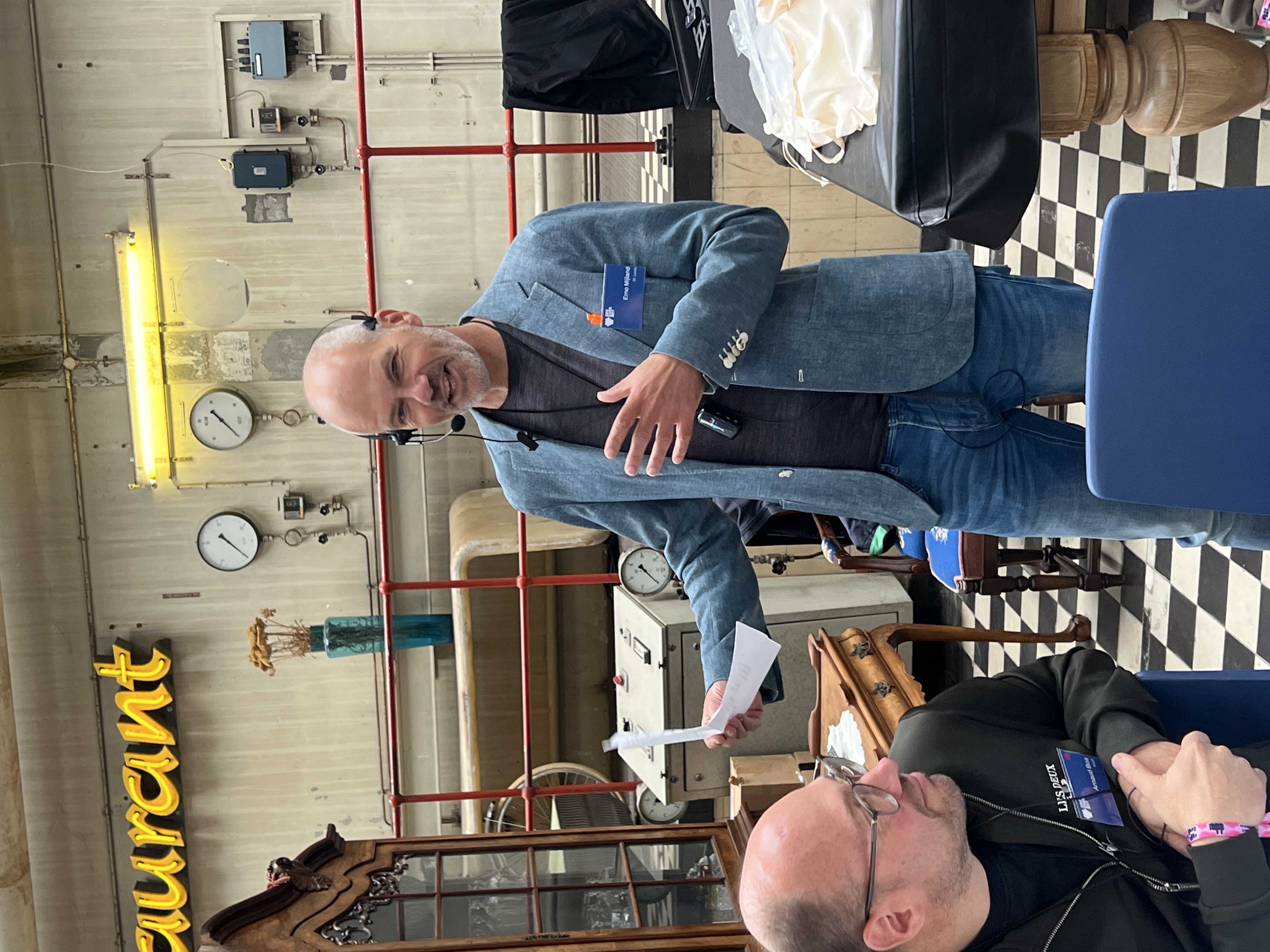 We begonnen met een gezamenlijke lunch op het Ketelhuisplein, midden in het hart van het festival. Tussen de gerechten door nam Erno Mijland ons mee in zijn verhaal over de wisselwerking tussen creativiteit en technologie. Hoe AI niet alleen een hulpmiddel is, maar ook een creatieve partner kan worden in het maakproces. Een mooi startpunt voor een dag vol nieuwe ideeën.