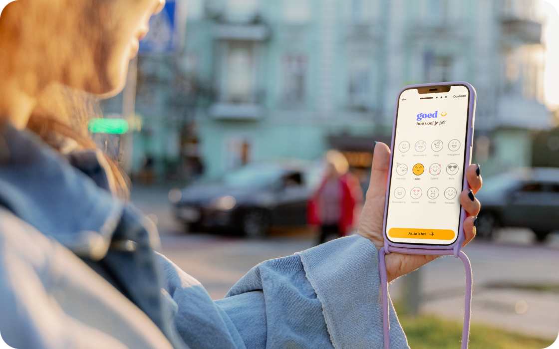 Feelee geeft jongeren inzicht in hun eigen emoties. De app checkt bij jongeren in en laat ze stilstaan bij hoe ze zich voelen en welke ‘woorden’ ze daar aan geven. Tussen aanhalingstekens, want ze uiten hun gevoelens op een voor hen gebruikelijke manier: via emoji’s. En omdat je op één dag meerdere gevoelens kunt ervaren, vraagt de app drie keer per dag aan jongeren “hoe voel je je?”. Dankzij wetenschappelijk onderzoek weten wij wat elke emoji-antwoord voor een jongere betekent.