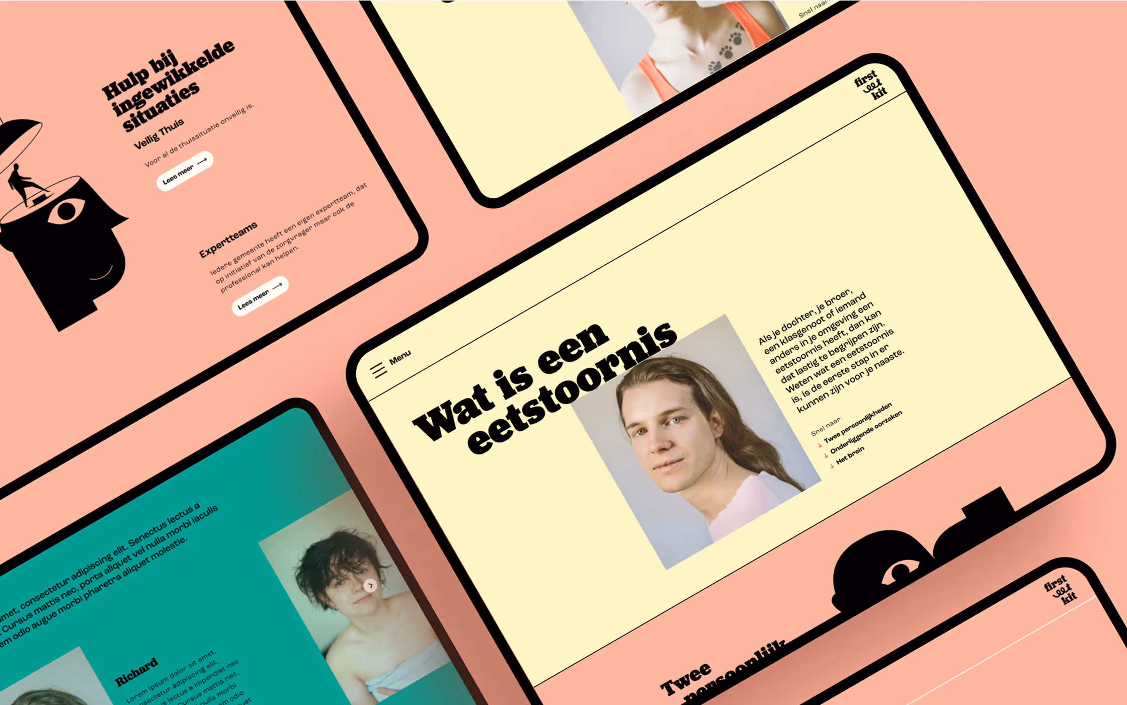 De illustraties zijn abstract omdat de eetstoornis zich voornamelijk in het brein van iemand afspeelt. En zodat ze niet triggerend werken. Het design team heeft in nauwe samenwerking met development de illustraties interactief gemaakt, om het gevoel van ‘beweging’ te benadrukken. De illustraties op de website zijn gecombineerd met rauwe en eerlijke fotografie. De foto’s zijn geschoten door internationale fotografe Mafalda Rakoš en portretteren een diversiteit aan personen die daadwerkelijk een eetstoornis hebben (gehad).
